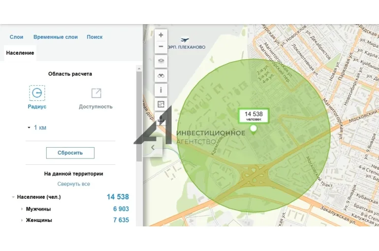 - район города с высокой плотностью населения (более 14 500 человек в радиусе 1 км);